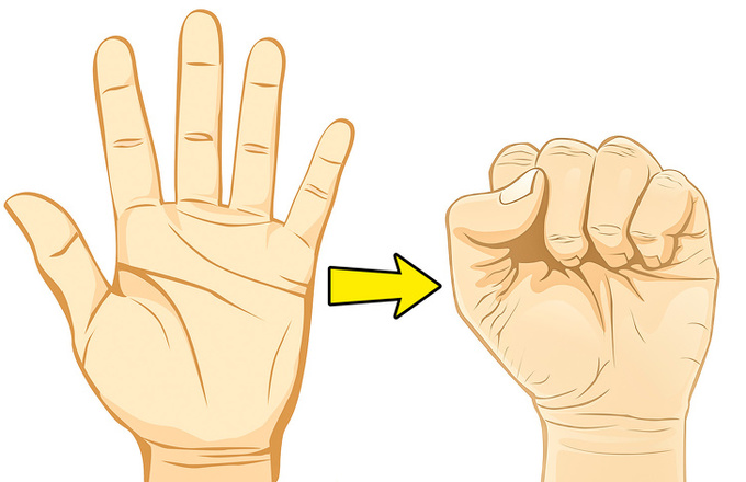 Nắm và giữ bàn tay của bạn. Sau 30 giây, mở ra sẽ thấy lòng bàn tay chuyển sang màu trắng. Khi nắm tay, các mạch máu bị ép lại, hạn chế lưu lượng máu đến tay. Sau khi thả lỏng bàn tay, máu ùa về, chứng tỏ các mạch máu cơ thể đang hoạt động tốt và bạn khỏe mạnh. Ngược lại, nếu phải mất nhiều thời gian để lòng bàn tay trở lại màu đỏ có thể là dấu hiệu của bệnh xơ cứng động mạch.