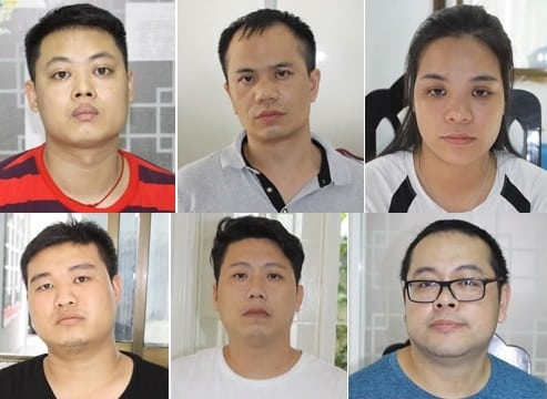 5 bị can người Trung Quốc và 1 bị can người Việt Nam trong vụ án thuê trẻ vị thành niên quay clip đồi trụy. Trương Tuệ Mẫn (áo xanh) được xác định là đối tượng cầm đầu. (Ảnh: cadn.com.vn)