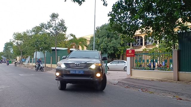 Xe của Công an tỉnh Bình Thuận đưa ông Đỗ Ngọc Điệp tới trụ sở Công an xã Tiến Lợi thành phố Phan Thiết để tiến hành các thủ tục tố tụng theo quy định