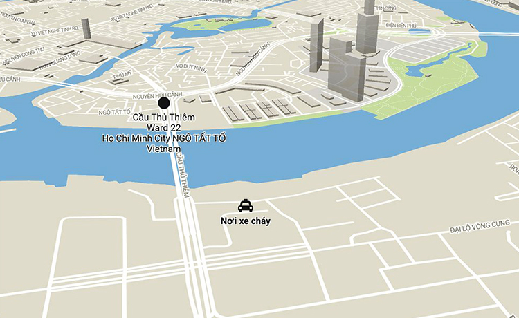 Nhiều lực lượng được phân công đến hiện trường, điều tra các dấu hiệu liên quan, phát hiện chiếc ôtô của nạn nhân cháy tại bãi đất trống bên hông cầu Thủ Thiêm, quận 2.