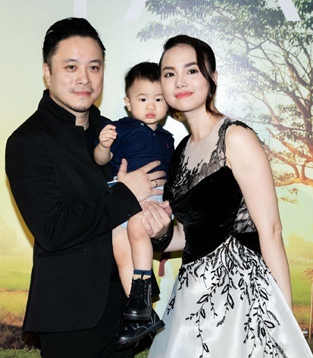 Victor Vũ và Đinh Ngọc Diệp bên con trai - bé Landon Vũ Đông Quân - ở buổi ra mắt "Mắt biếc". Ảnh: Quỳnh Trần.