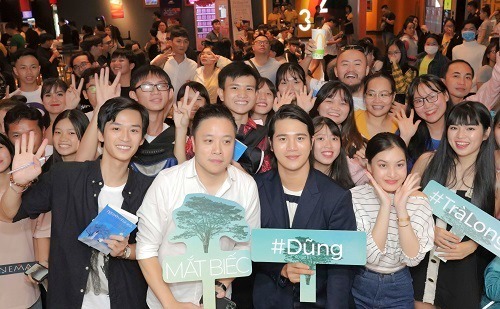 Êkíp "Mắt biếc" trong buổi giao lưu ở một cụm rạp tại TP HCM. Ảnh: Galaxy.
