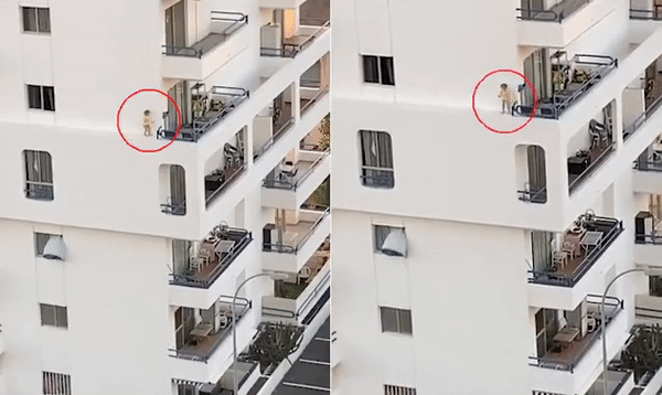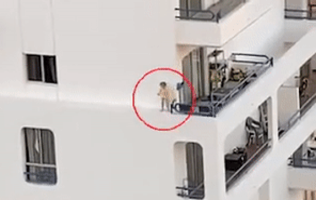 Một người đã quay lại một đoạn video về một bé gái chạy trên bờ tường hẹp lơ lửng trên tầng 5 của tòa nhà đối diện, khiến quay lại cảnh tượng nguy hiểm này, có lẽ đã đến cảnh báo với người thân và được cho biết rằng bố mẹ cô bé lúc đó đang tắm, khiến mọi người thót tim và lời cảnh tỉnh đến bậc cha mẹ.