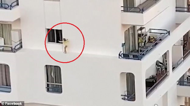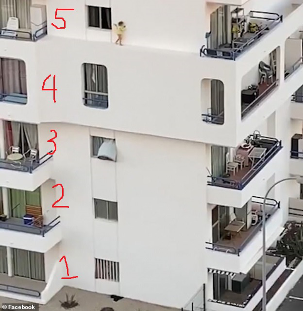 Mới đây, người dân ở một chung cư tại Playa Paraiso, Tenerife, Tây Ban Nha đã có phen thót tim khi thấy một bé gái chạy trên bờ tường hẹp lơ lửng trên tầng 5 của tòa nhà đối diện.