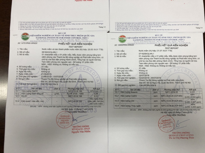 Cơ quan Công an đã yêu cầu Thanh tra Bộ tiếp tục phối hợp để xác minh thêm, lấy mẫu thêm trên thị trường.Trên cơ sở mẫu, Thanh tra Bộ NN&PTNT đã chuyển đến Viện kiểm nghiệm an toàn thực phẩm quốc gia để kiểm nghiệm. Kết quả, toàn bộ chất cấm, kim loại nặng đều dưới ngưỡng cho phép. Trên cơ sở đó, cơ quan công an đã yêu cầu Thanh tra Bộ xử lý nghiêm khắc về mặt hành chính.