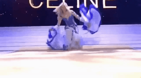 Celine Van Ouytsel vấp vào chân váy và ngã ngào ngay trên sân khâu đêm Chung kết. Người xem vừa thót tim vừa bật cười vì tình huống hi hữu của cô. Lọ Lem thì rớt hài và chiếm trọn trái tim của hoàng tử, còn Celine Van Ouytsel rớt áo lót và nhận được chiếc vương miện hoa hậu danh giá nhất.