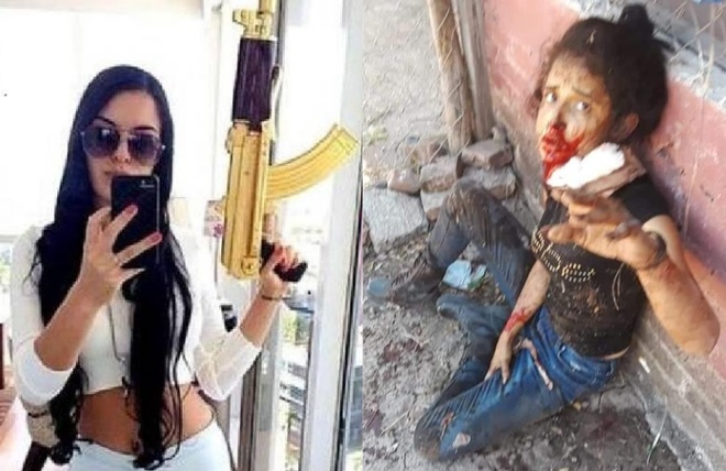 Nữ sát thủ López Esquivel khi còn nhởn nhơ ngoài vòng pháp luật (trái) và sau khi trúng đạn trong cuộc đột kích của quân đội Mexico. Ảnh: Cienradios.