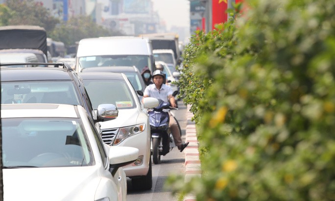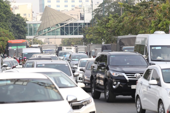 Tình trạng tương tự cũng diễn ra ở tuyến Bạch Đằng - đường một chiều hướng vào sân bay - khi hàng ngàn phương tiện xếp hàng dài, di chuyển chậm chạp.
