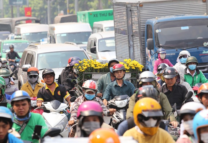 Thời điểm gần Tết Nguyên Đán, các tuyến đường xung quanh khu vực sân bay Tân Sơn Nhất kẹt cứng. Hàng ngàn người mệt mỏi vì tắc đường, xe cộ chen chúc nhau.