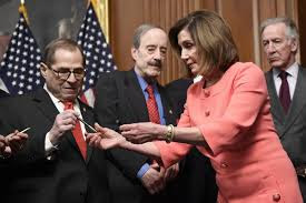 Ø Bà Pelosi cho biết đã chọn xong 7 dân biểu sẽ đại diện cho Hạ Viện đóng vai công tố (impeachment managers), truy tố TT Trump trong phiên tòa của Thượng Viện. Chủ tịch Ủy ban Tình Báo Adam Schiff là trưởng đoàn, và chủ tịch Ủy Ban Tư Pháp Jerrold Nadler là thành viên. Tòa Bạch Ốc cũng cho biết đã chọn xong nhóm luật sư đứng ra biện hộ cho TT Trump. Gồm có hai đại luật sư của TT Trump Pat Cipollone và Jay Sekulow, nhưng được tăng cường thêm với ba cỗ đại bác Kenneth Starr và Robert Ray là hai công tố độc lập trước đây đã truy tố TT Clinton, và Alan Dershowitz, cựu giáo sư -professor emeritus- về Hiến Pháp của Đại Học Harvard. Ngoài ra còn có bà Pam Bondi, cựu bộ trưởng Tư Pháp tiểu bang Florida.