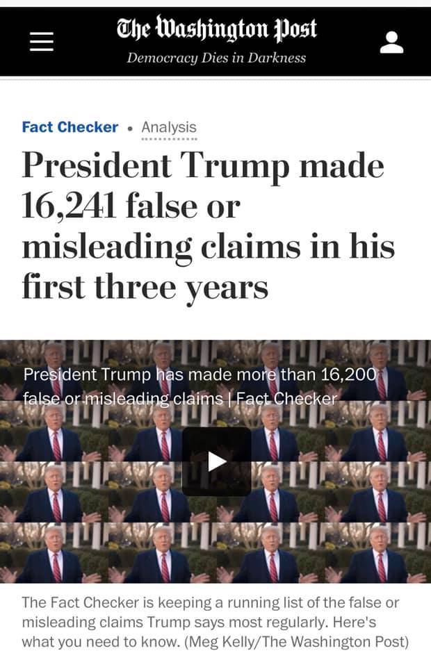 Báo The Washington Post nói gì về 16.241 lần nói không đúng sự thật trong 3 năm của TT Trump
