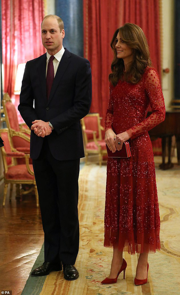 Vào tối ngày 20/1, đại diện cho Nữ hoàng Anh, vợ chồng Công tước và Nữ công tước xứ Cambridge đã xuất hiện rạng rỡ trong bữa tiệc chiêu đãi tại Cung điện Buckingham bên lề Hội nghị thượng đỉnh đầu tư Anh - Phi.