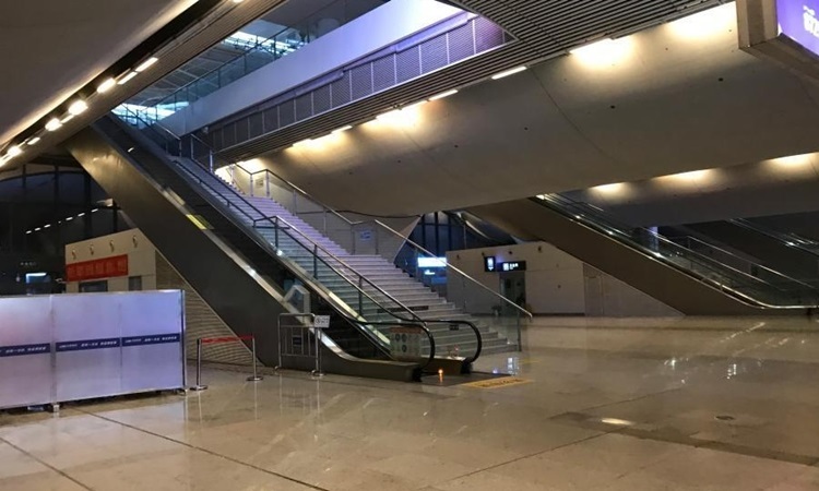 Các dịch vụ tại nhà ga Vũ Hán đều không có khách sử dụng. Ảnh: China News.