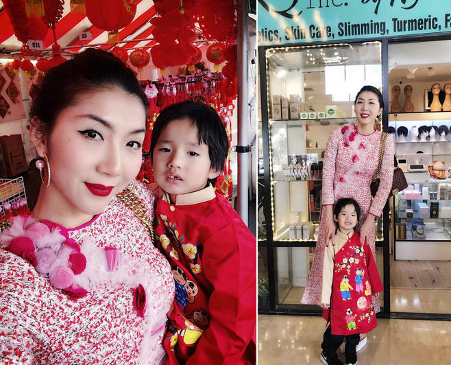 Người mẫu Ngọc Quyên sống và làm việc ở Santa Ana, bang California cùng con trai và mẹ ruột. Những ngày cuối năm, cả gia đình chân dài 8X mặc áo dài đi chợ Tết. Ngọc Quyên cho biết hiện cô thấy vui vẻ, công việc thuận lợi sau khi ly hôn chồng bác sĩ.