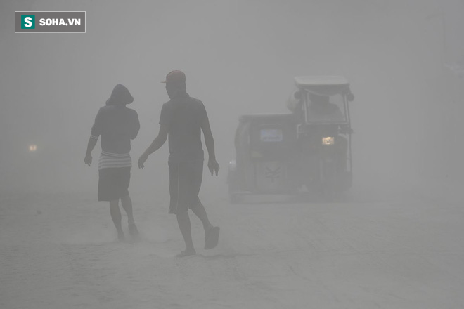 Người dân Tagayta đi trong tro bụi mịt mù từ núi lửa Taal phun ra. Ảnh: AP Photo/Aaron Favila