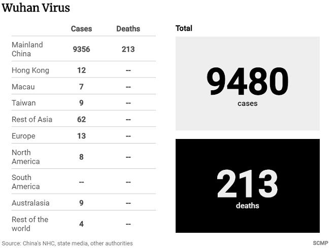 Theo SCMP, trong số 42 người tử vong trong ngày 30.1, 30 trường hợp ghi nhận ở Vũ Hán, vùng tâm dịch. Tổng số người tử vong vì virus Corona tăng lên con số 213. Hiện chưa có người tử vong ở bên ngoài Trung Quốc đại lục.