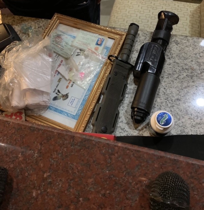 Theo điều tra, tối 1/2, trinh sát Công an tỉnh Đồng Nai phối hợp cùng Trung đoàn Cảnh sát cơ động Bộ Công an kiểm tra đột xuất quán Karaoke Phương Nam, tại tổ 8, KP.3, phường Xuân Thanh, TP.Long Khánh. Qua kiểm tra 2 phòng, công an phát hiện có 8 nam và 5 nữ có dấu hiệu sử dụng ma tuý. Công an thu giữ 1 bịch ny lông chứa ma tuý tổng hợp nhiều màu. Tại quầy thu ngân có 3 bịch ni lông chứa ma tuý tổng hợp nhiều màu, 1 con dao nhọn và 1 roi điện.