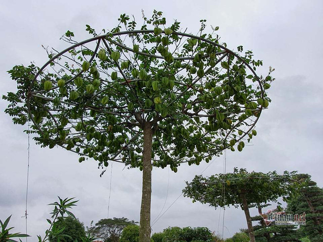 Cây được tạo tán bằng khung sắt tròn.