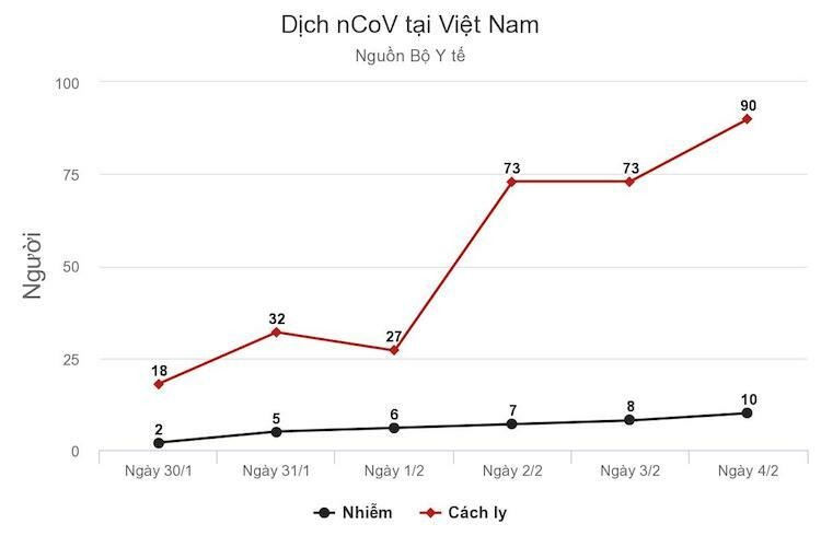 Bộ Y tế chiều 4/2 xác nhận ca thứ 10 dương tính với nCoV tại Việt Nam, là nữ bệnh nhân 42 tuổi sống ở Vĩnh Phúc.