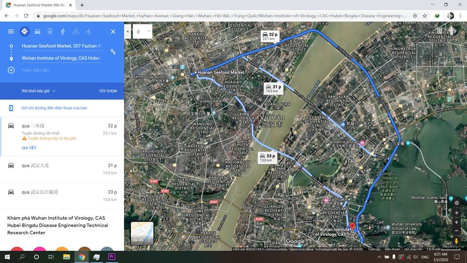 Một cách kỳ lạ, vị trí của Viện nghiên cứu Virus học Vũ Hán trên google vừa bị dời đi vài cây số, đến nơi “đồng không mông quạnh”, cách xa Chợ Hải Sản Hoa Nam là nơi chính quyền công bố nguồn dịch. Nếu không tin, bạn hãy tự lên Google map kiểm tra! Không có tật tại sao người Trung Quốc lại giật mình?