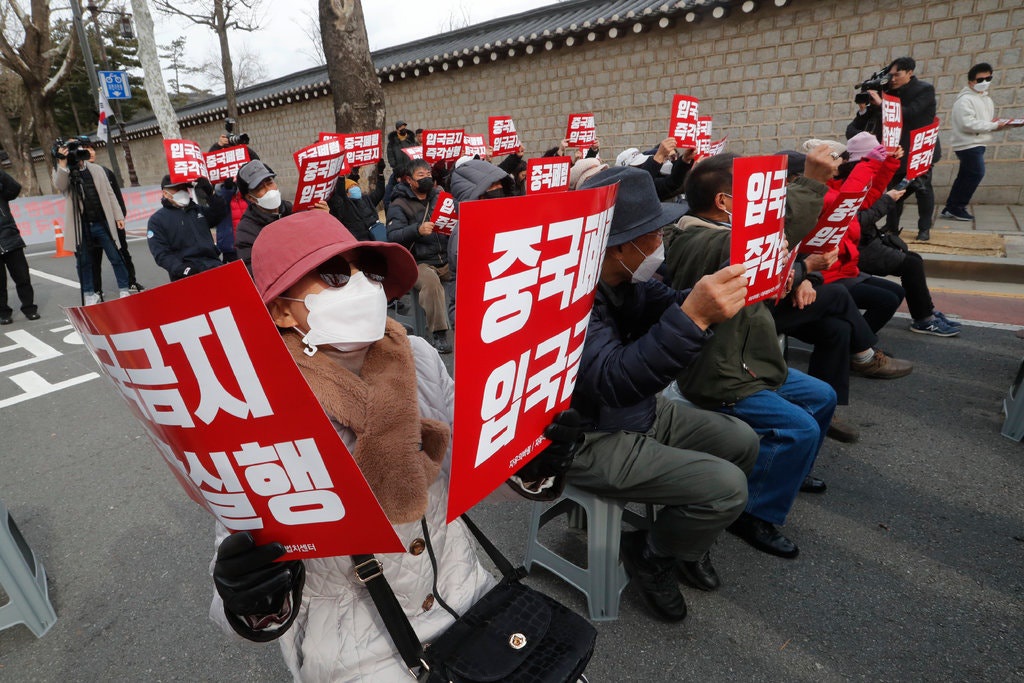 Người Hàn Quốc biểu tình kêu gọi cấm du khách Trung Quốc. Ảnh: AP.