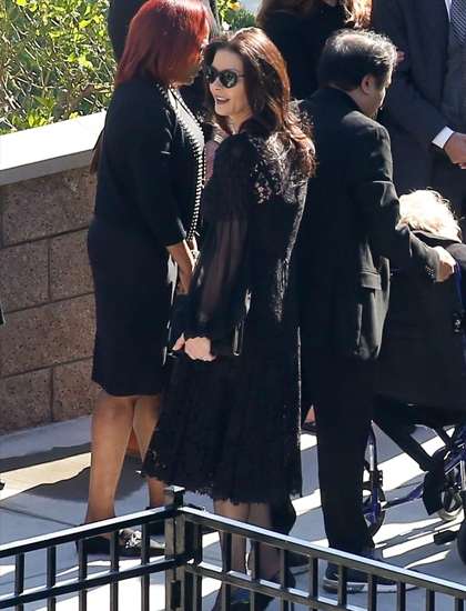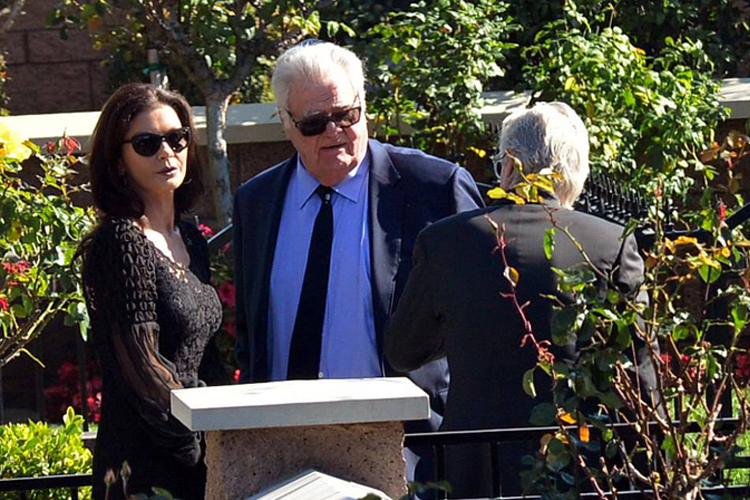Vợ Michael - nữ diễn viên Catherine Zeta-Jones (kính đen). Lúc còn sống, Kirk rất quý con dâu và thường chụp ảnh, cùng dự sự kiện. "Gửi Kirk kính yêu, con sẽ yêu bố suốt cuộc đời này. Con nhớ bố nhiều. Hãy ngủ ngon nhé", Catherine viết trên trang cá nhân.