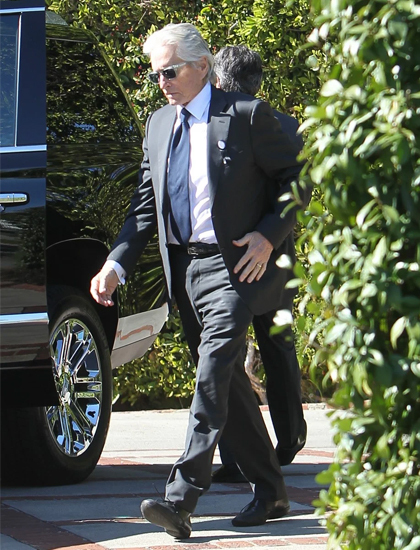 Tài tử Kirk Douglas qua đời hôm 5/2, thọ 103 tuổi. Đám tang ông được tổ chức tại nghĩa trang Los Angeles. Con trai cả - diễn viên Michael Douglas - tại lễ tang.