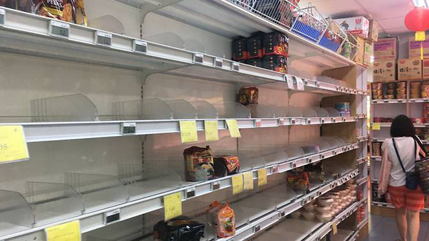 Không chỉ có sản phẩm vệ sinh sát khuẩn, sản phẩm đồ ăn thức uống như mì gói, gạo, sữa... cũng tạm thời "cháy hàng" (Ảnh: CNA)
