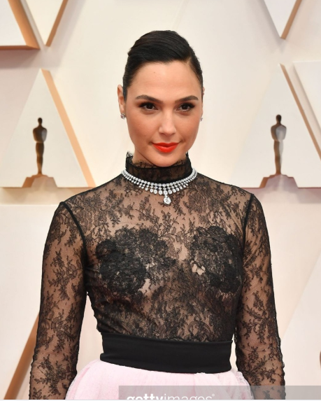 Gal Gadot "đốt mắt" với thiết kế ren xuyên thấu phối cùng chân váy nhiều lớp vô cùng lộng lẫy.