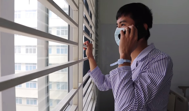 ỗ Quang Duy gọi điện cho gia đình thông báo mình và vợ con vẫn khỏe khi đang ở khu cách ly. Ảnh: Nhân vật cung cấp