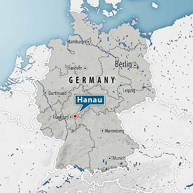 Thành phố Hanau nơi xảy ra vụ xả súng. Đồ họa: Daily Mail.