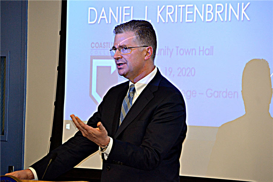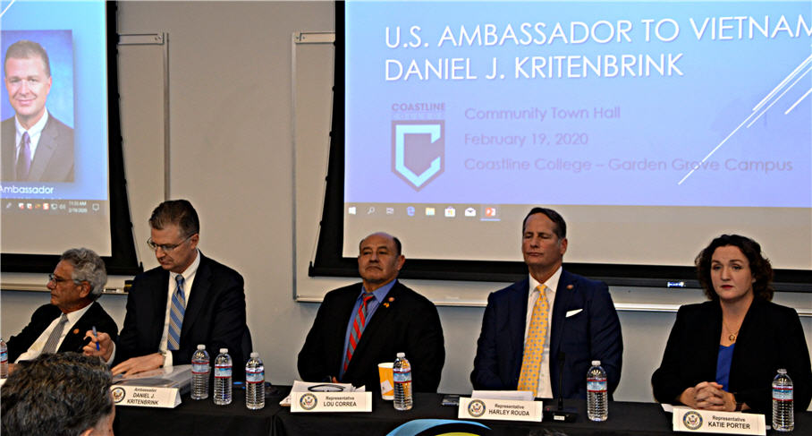 Ông Lý Vĩnh Phong, Chánh Văn Phòng Dân Biểu Liên Bang Alan Lowenthal, đã điều hợp chương trình, và nhà báo Hoàng Trọng Thụy làm thông dịch. Trước tiên, bà Tiến Sĩ Viện Trưởng Loretta Adrian có lời chào mừng Đại Sứ Kritenbrink và các vị Dân Biểu Liên Bang Hoa Kỳ có mặt. Bà Adrian cho biết, Trường Coastline Community College rất hân hạnh được chọn làm nơi ông Đại Sứ Hoa Kỳ tại Việt Nam và các vị Dân Biểu Liên Bang gặp gỡ cộng đồng và báo chí Việt Nam tại Little Saigon.