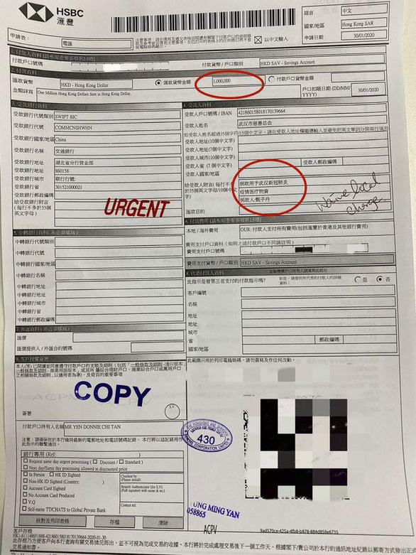Hình ảnh được truyền thông Trung Quốc đại lục đăng tải cho thấy khoản đóng góp 1 triệu đôla Hong Kong của Chân Tử Đan - Ảnh chụp màn hình Sina