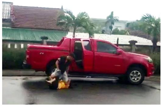 Hình ảnh Nguyễn Chiến Thắng hành hung, kéo vợ cũ lên xe bán tải bị người dân ghi lại - Ảnh cắt từ clip