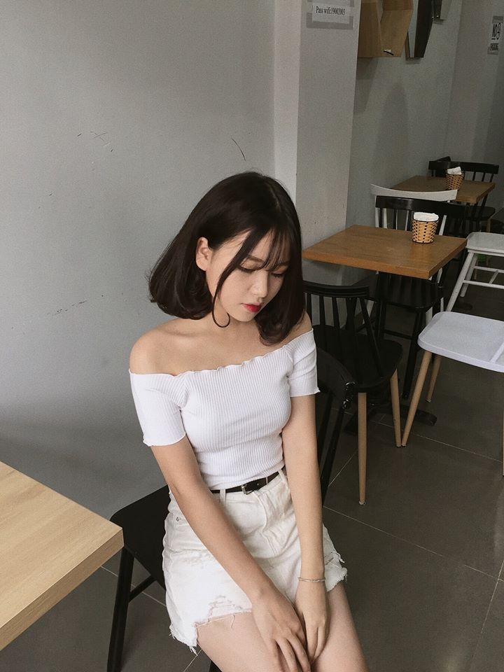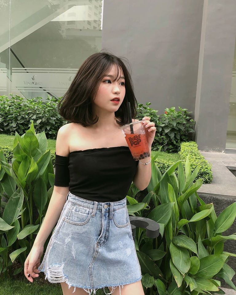- Style bánh bèo dạo phố, đi ăn hàng, uống cà phê...: Mặc đầm trễ vai ôm sát cơ thể, mix áo trễ vai cùng chân váy chữ A hoặc sơ vin cùng áo sơ mi sẽ giúp dáng vóc trông cao hơn.