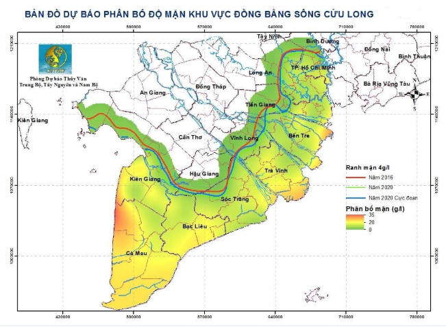 Chiều sâu ranh mặn 4g/l trong thời kỳ này có khả năng như sau: