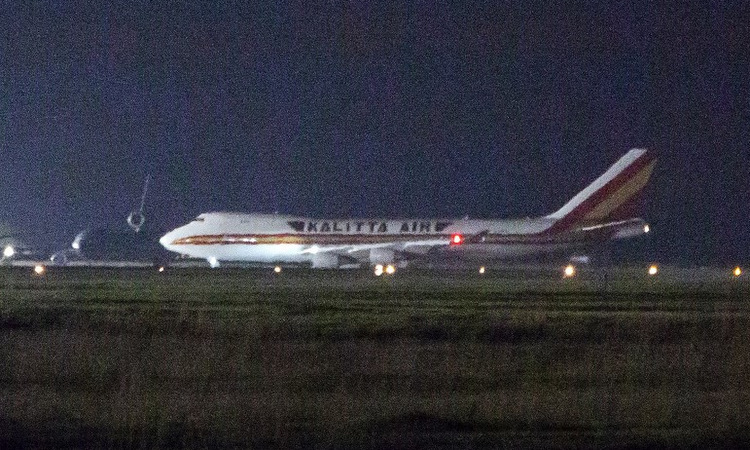 Máy bay đưa công dân Mỹ trên tàu Diamond Princess về nước hôm 16/2. Ảnh: AFP.