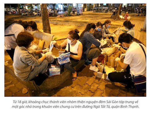 Tìm hiểu và hỏi chuyện mới biết, trước đó nhóm thiện nguyện đêm Sài Gòn từng tổ chức nhiều hoạt động ý nghĩa: phát cơm từ thiện, tặng quà cho những người vô gia cư. Mỗi tháng các bạn lại tổ chức 2-3 chương trình. Nhóm có khoảng 20 thành viên chính thức và hơn 50 tình nguyện viên tham gia. Đa số nhóm bạn trẻ này là sinh viên, mới ra trường vài năm, người lớn tuổi nhất đã lập gia đình, 40 tuổi.