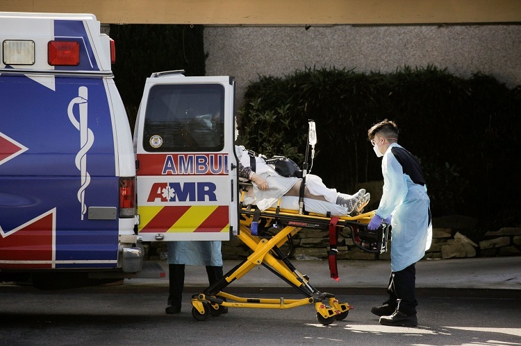 Các nhân viên y tế tại Trung tâm Chăm sóc Sức khỏe Kirkland lên xe cứu thương vào ngày 4/3. Ảnh: Reuters