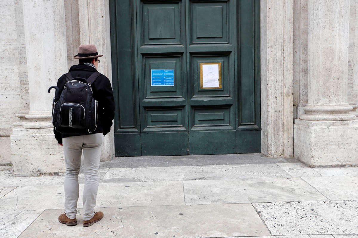 Ngày 1/3, nhà thờ St Louis tại trung tâm thành phố Rome đã đóng cửa khi một linh mục nhiễm nCoV. Trên ảnh, một người đàn ông đang đứng đọc thông báo trước cổng nhà thờ. Ảnh: Remo Casilli/Reuters.