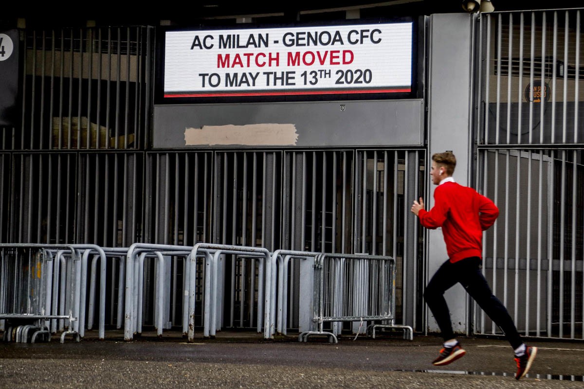Trên ảnh là sân vận động Giuseppe Meazza của Milan đã bị đóng cửa. Trận đấu bóng của giải Serie A giữa AC Milan và Genoa CFC đã bị hoãn đến ngày 13/5. Ảnh: Mourad Balti Touati/EPA.