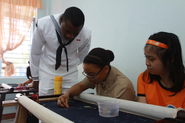 Trung úy Jeremy Sweeten, trưởng nhóm, chia sẻ: "Tôi cảm thấy biết ơn và rất hào hứng khi được tìm hiểu văn hóa, đất nước và con người Việt Nam. Đặc biệt, khi đến thăm các em khuyết tật học nghề, tôi nhận thấy nhiều cái hay trong cách chăm sóc người khuyết tật của các bạn. Trẻ khuyết tật được chăm sóc nhiều mặt, vừa phát triển con người và có được công việc, để các em trở thành người có ích".
