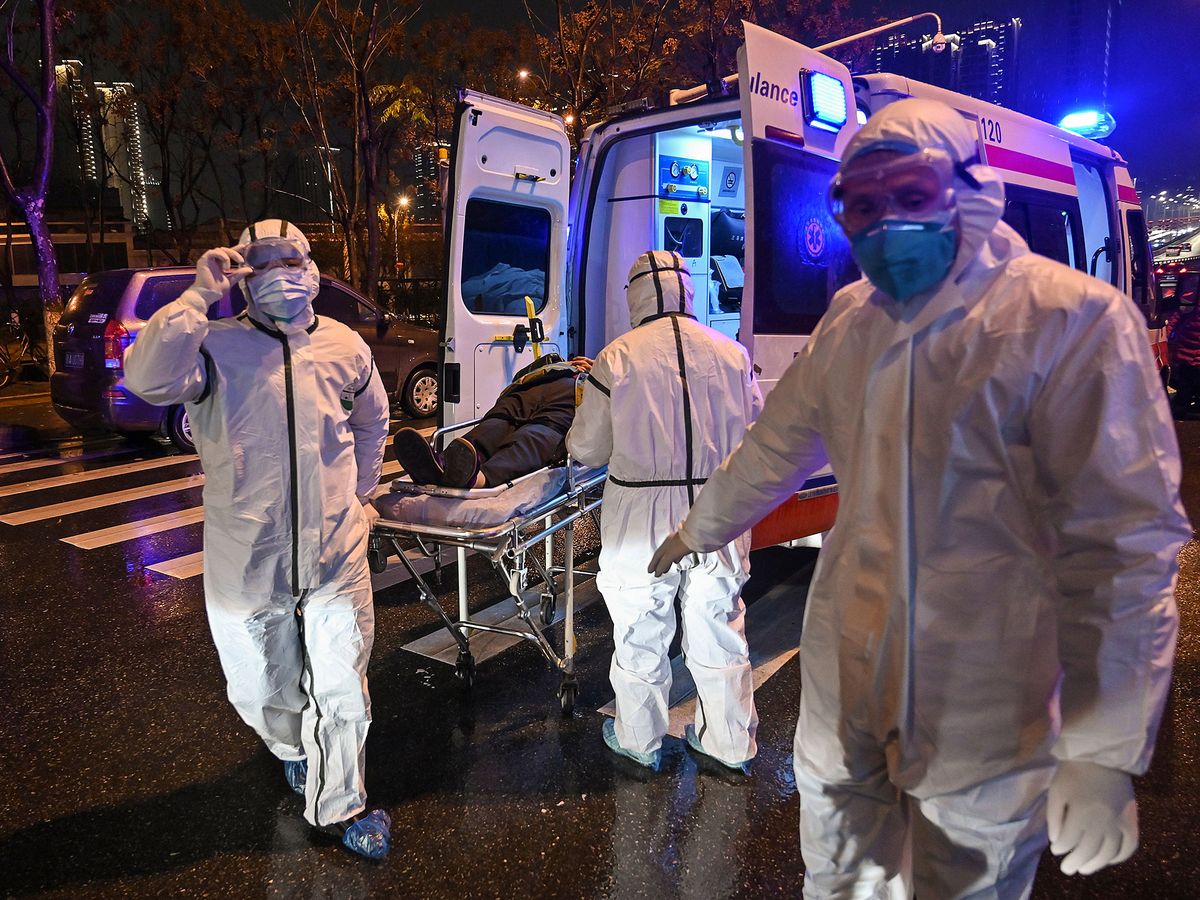 Các bác sĩ đưa người bệnh nhiễm Covid-19 nhập viện (ảnh: Bloomberg)