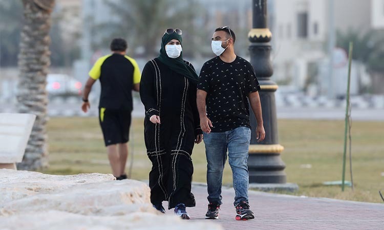 Người dân đeo khẩu trang khi đi bộ ở tỉnh Qatif, Arab Saudi hôm 10/3. Ảnh: Reuters.