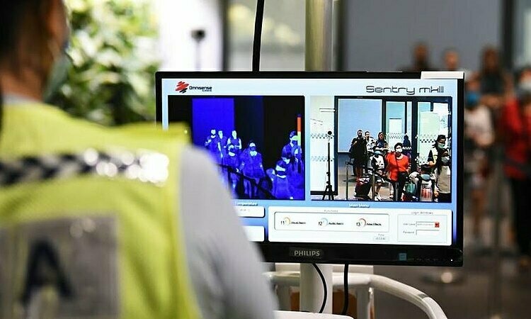 Thiết bị kiểm tra thân nhiệt tại cửa khẩu Tuas, Singapore. Ảnh: Try Sutrisno Foo.
