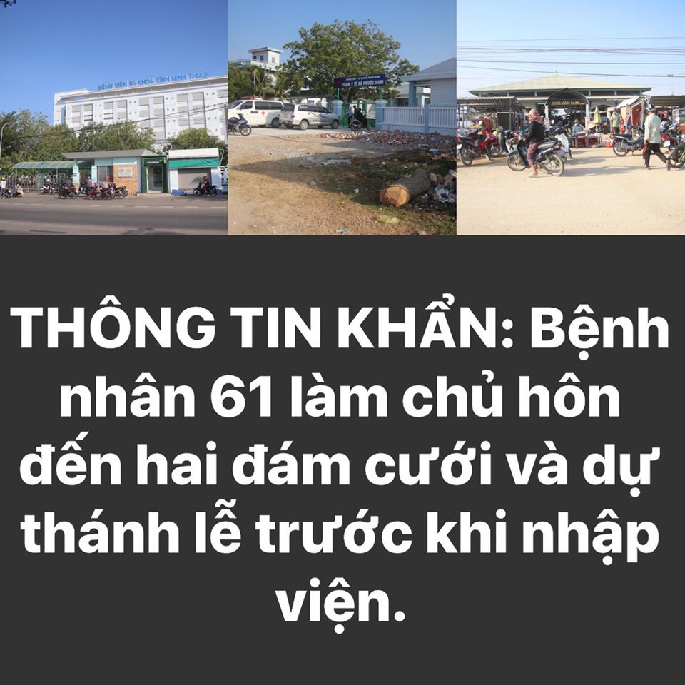Trong thời gian ủ bệnh, bệnh nhân nhiễm virus Corona thứ 61 đã tiếp xúc với rất nhiều người. Bệnh nhân này làm chủ hôn đến hai đám cưới và dự thánh lễ trước khi nhập viện.