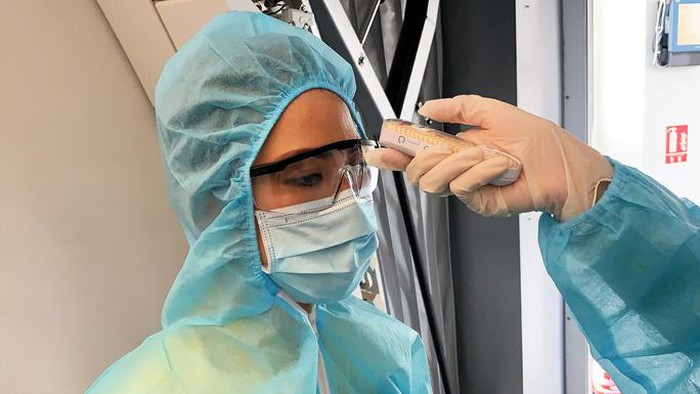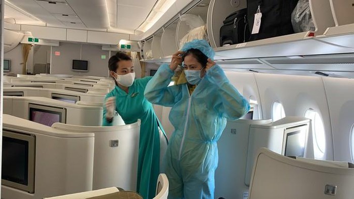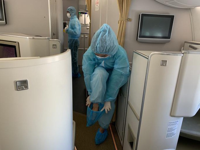 Toàn bộ phi hành đoàn được trang bị đồ bảo hộ y tế đặc chủng gồm áo mặc che kín toàn thân, găng tay, túi bọc giày, khẩu trang và kính mắt. Hành khách, tổ bay sau khi hạ cánh sẽ được kiểm tra sức khỏe và cách ly theo quy định.