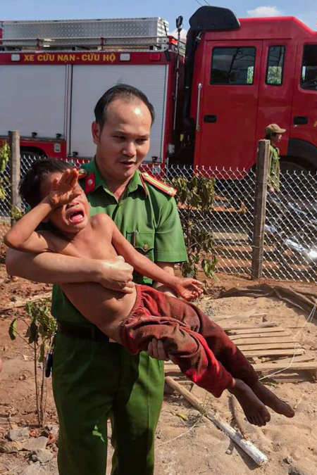 Ông Đậu Văn Huy, Phó phòng, Phòng cảnh sát PCCC và Cứu nạn cứu hộ cho biết, khó khăn nhất là lúc cắt bêtông làm sao đảm bảo không cắt trúng chân đứa trẻ, ngoài ra trụ điện nhiều sắt thép nên công tác cứu hộ kéo dài hơn 2 giờ.