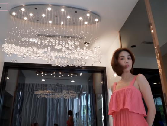 Trong đoạn clip này, Ngọc Trinh chia sẻ về chiếc đèn chùm cô rất thích có giá gần 100 triệu đồng.