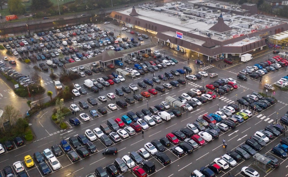 Bãi đỗ xe bên ngoài siêu thị Tesco Extra ở New Malden kín chỗ.